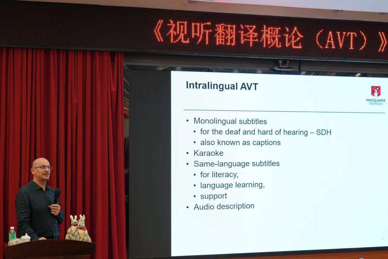 为深化同学们对翻译专业细分领域的认知,拓宽国际学术视野,助力专业能力提升,11月6日,国际教育学院特邀澳大利亚麦考瑞大学语言学系翻译与口译教授Jan-Louis Kruger为英语(师范)专业的学生带来《视听翻译概论(AVT)》专题讲座。