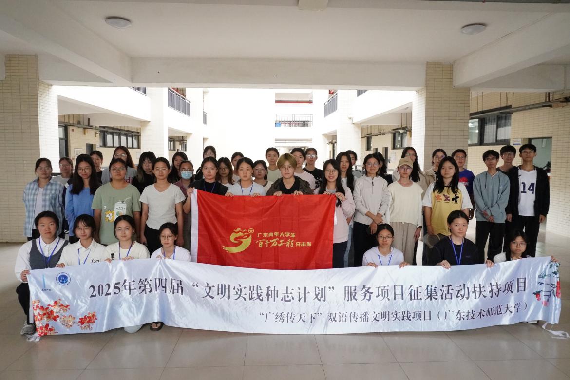 10月31日,由广州市精神文明建设办公室主办、广东技术师范大学国际教育学院承办的第四届“文明实践种志计划”扶持项目“广绣传天下”双语传播研学活动,在广东技术师范大学白云校区解锁新场景——“丝扣经纬・绣启智巧”广绣研学体验,邀学子共探非遗匠心。