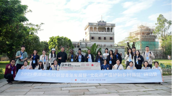 2025年11月22日至23日,受五邑大学邀请,我院苏婕、李冉老师带领戴凝、袁美、何蕊君三名学生赴江门参加2025粤港澳高校联盟青年发展暨“文化遗产保护与乡村振兴”研习营。侨乡江门是岭南文化的鲜活载体,这场以“行走”为课堂的研习,正是青年触摸岭南文脉、接力文化传播的生动实践——师生们以脚步丈量侨乡肌理,于建筑、民俗与人文中解码五邑文化底蕴,更切身感知“百千万工程”下岭南乡村振兴的生动答卷。