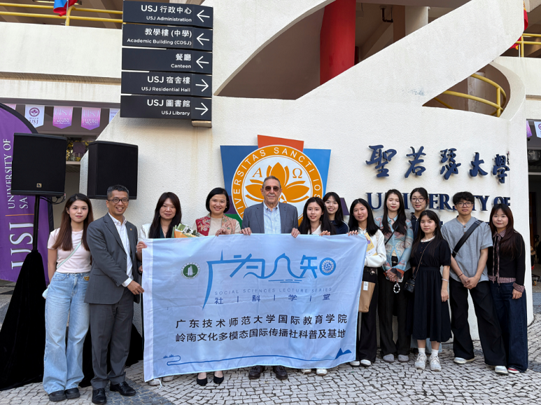 为深化粤澳高校人文交流、拓展师生国际化视野,2026年3月14日,广东技术师范大学国际教育学院师生代表团应邀赴澳门圣若瑟大学“2026年国际文化嘉年华”活动。本次活动由美术学院周峻岭教授、国际教育学院苏婕老师共同带队,2名23级英语(师范)专业同学参加。