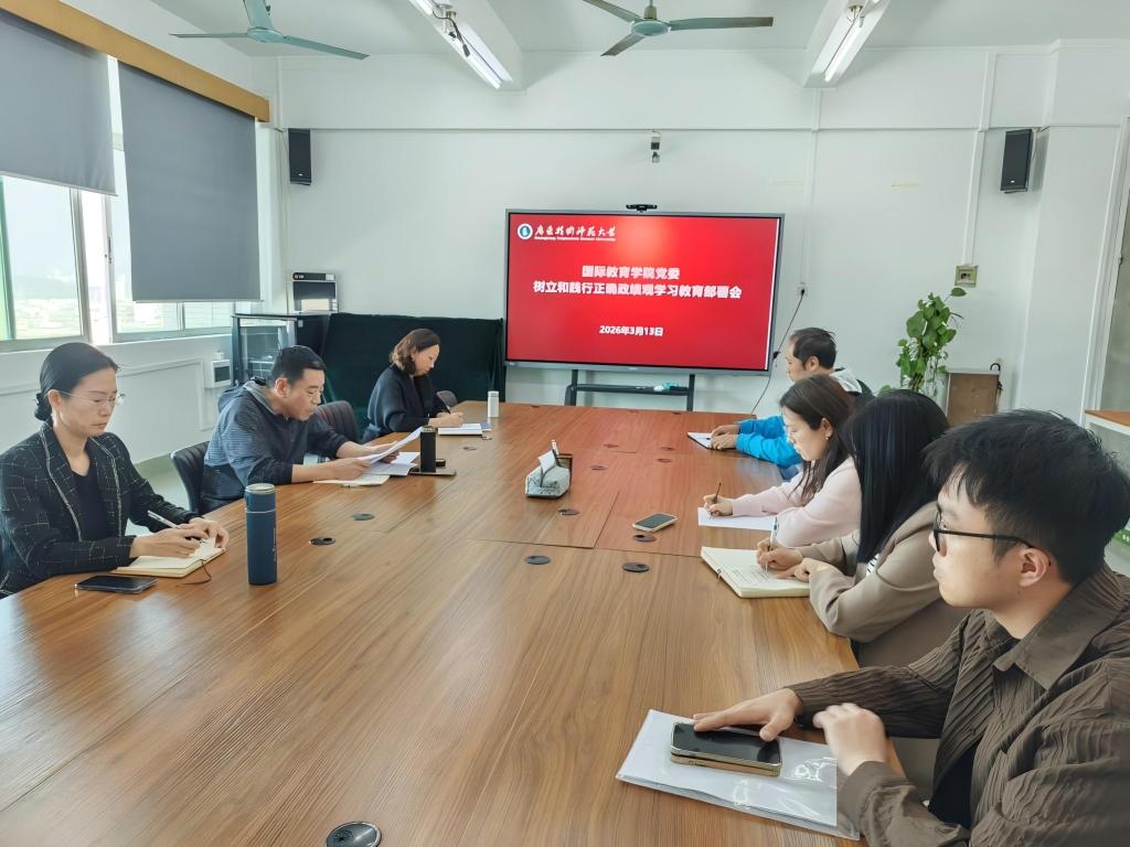 3月13日,国际教育学院在东校区第一教学楼1012室召开树立和践行正确政绩观学习教育动员部署会暨党支部书记工作例会。学院党委书记喻忠恩主持会议,学院领导班子成员及各党支部书记参会。