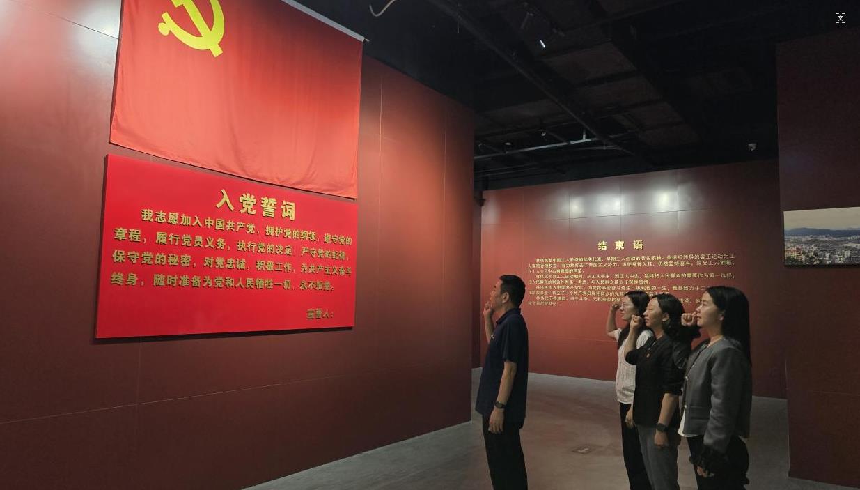 参观结束后,全体党员代表面向党旗,在党委书记喻忠恩的领誓下重温入党誓词,铮铮誓言彰显对党的忠诚与担当。